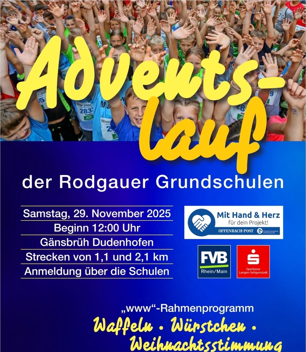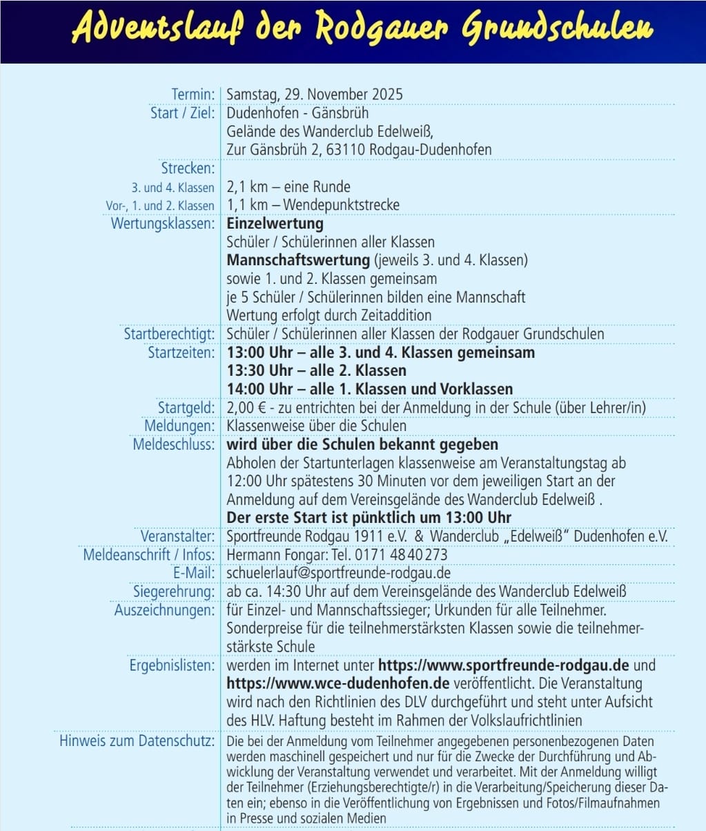 Bereits zum 4. Mal veranstalten wir, die Sportfreunde Rodgau, gemeinsam mit unserem Kooperationspartner, dem Wanderclub Edelweiß, den Adventslauf der Rodgauer Grundschulen.