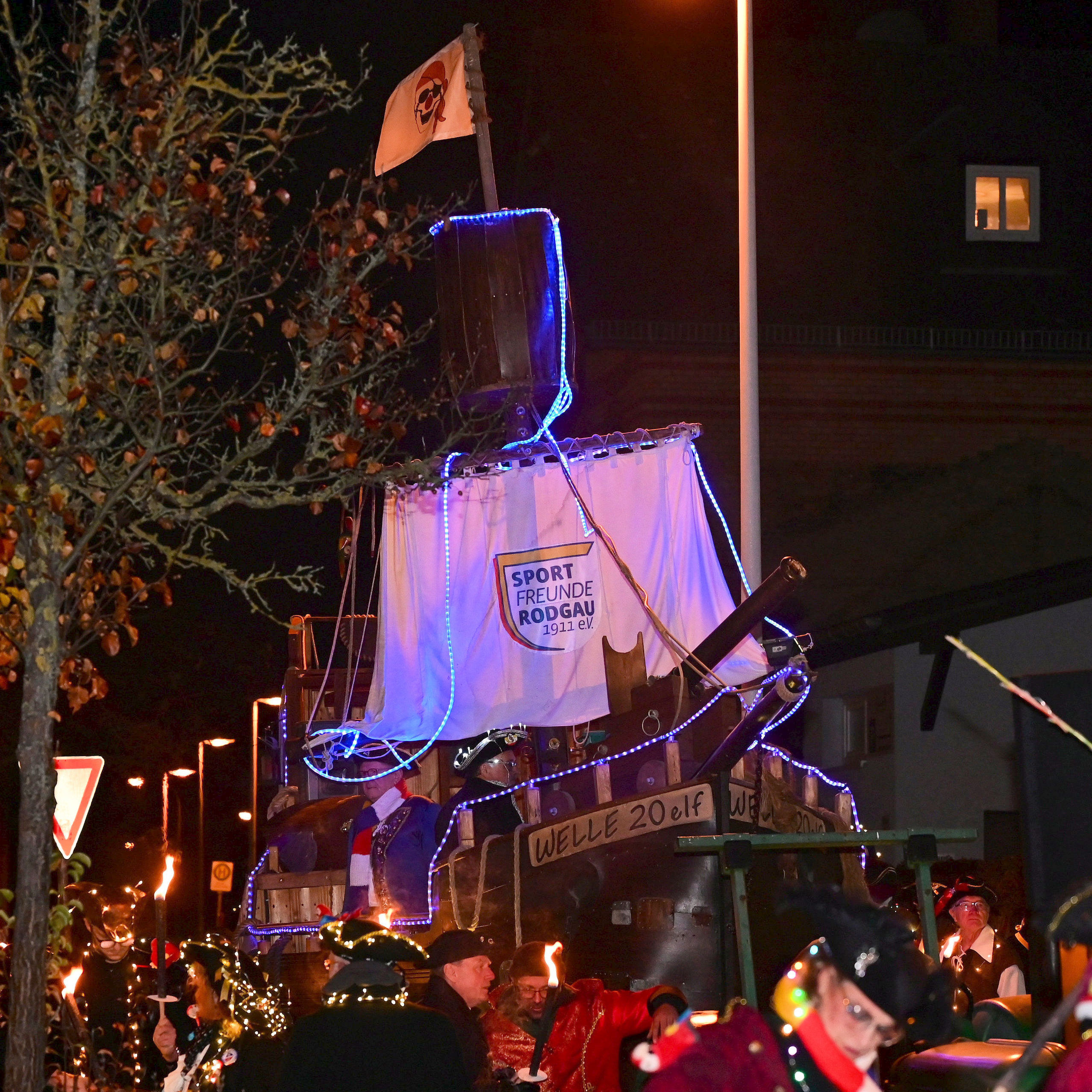Der Nachtumzug der Sportfreunde Rodgau begeistert wieder zahlreiche Närrinnen und Narren.