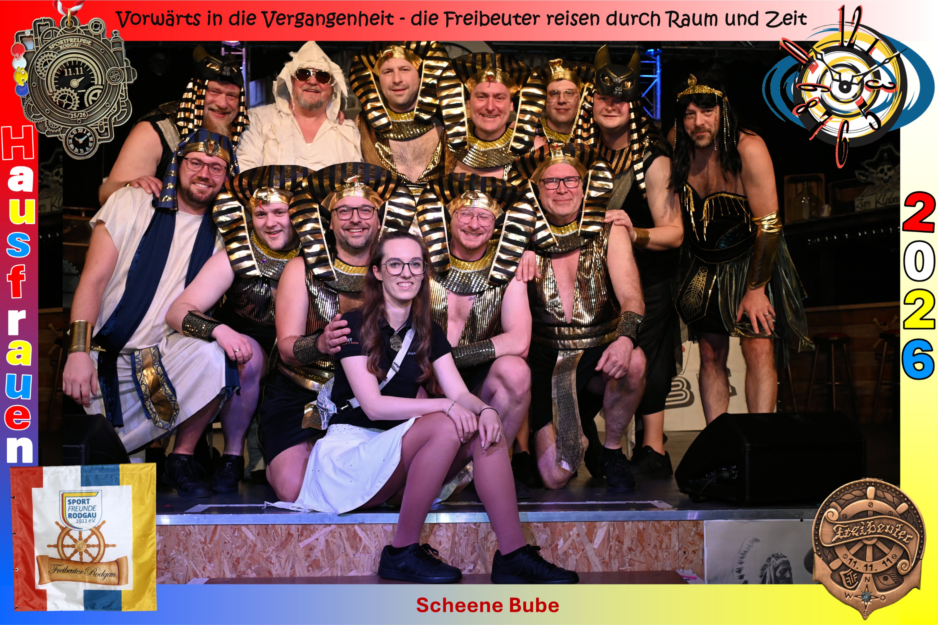Mit den Scheene Bube der SG Hainhausen kam Bewegung, Witz und Athletik auf die Bühne, wie man es sich immer wünscht, aber selten so schön bekommt. Unter der Leitung von Jessica Schön tanzten sie sich durch ägyptische Bilder, schwitzen bei Liegestützen, stapelten sich zu einer perfekten Pyramide, schlugen Räder und holten das Publikum dann in die Moderne zurück, indem sie „Schüttel Deinen Speck“ zum Motto erklärten. Es war einer dieser Auftritte, bei denen man merkt: Hier ist nicht nur Tanz, hier ist Selbstironie, Fitness, Timing und Humor vereint.