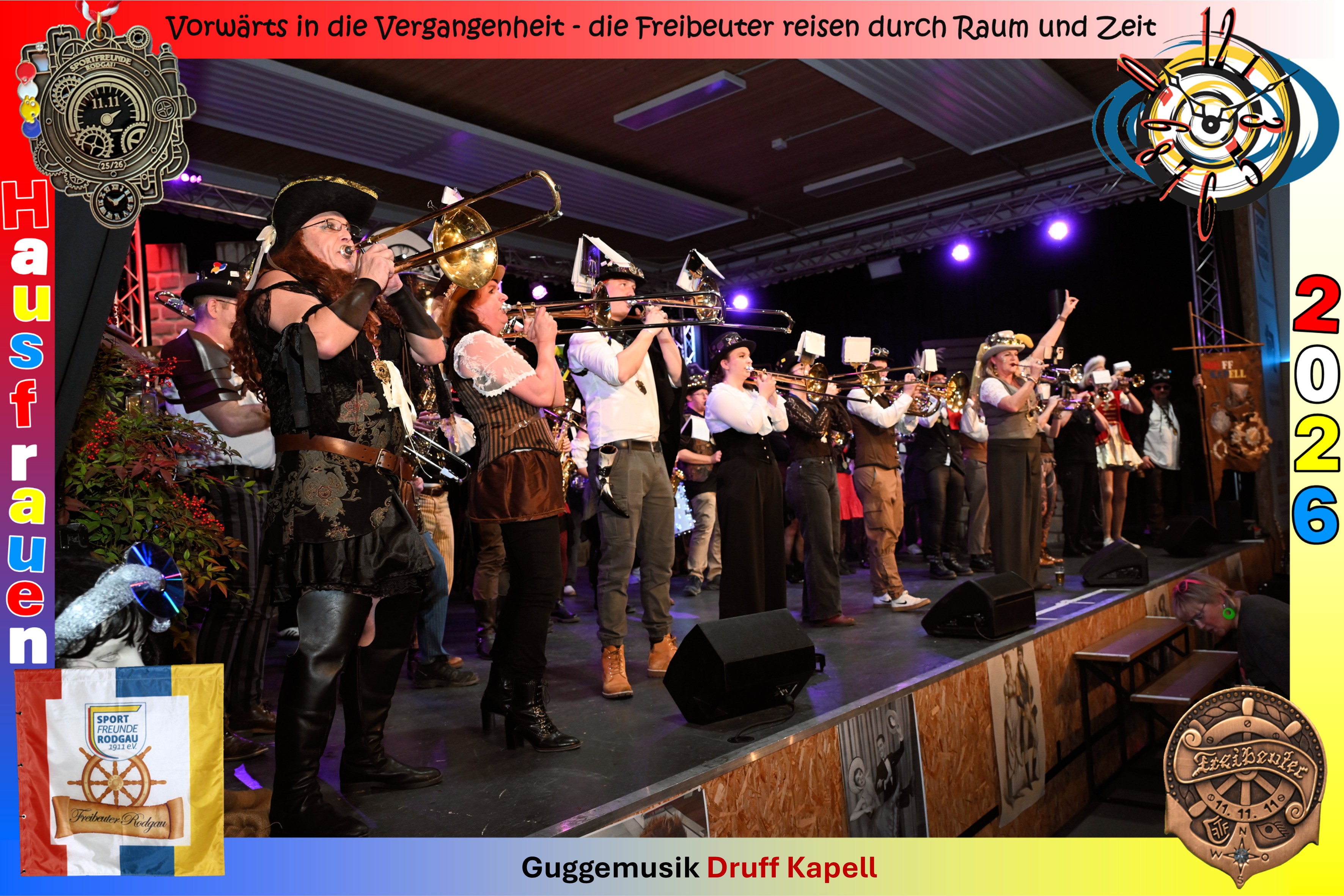 Die Guggemusik unter der Leitung von Silke Seum zeigte, wie schön auch etwas Unperfektes sein kann. Mit Sweet Caroline, Engel, und ein Medley aus Irgendwie, Irgendwo, Irgendwann von Nena und Sternenhimmel von Markus brachten sie die Halle in Feierstimmung. Musikalisch wird die Gruppe von Marius, Moritz und Markus Schlaich unterstützt.
