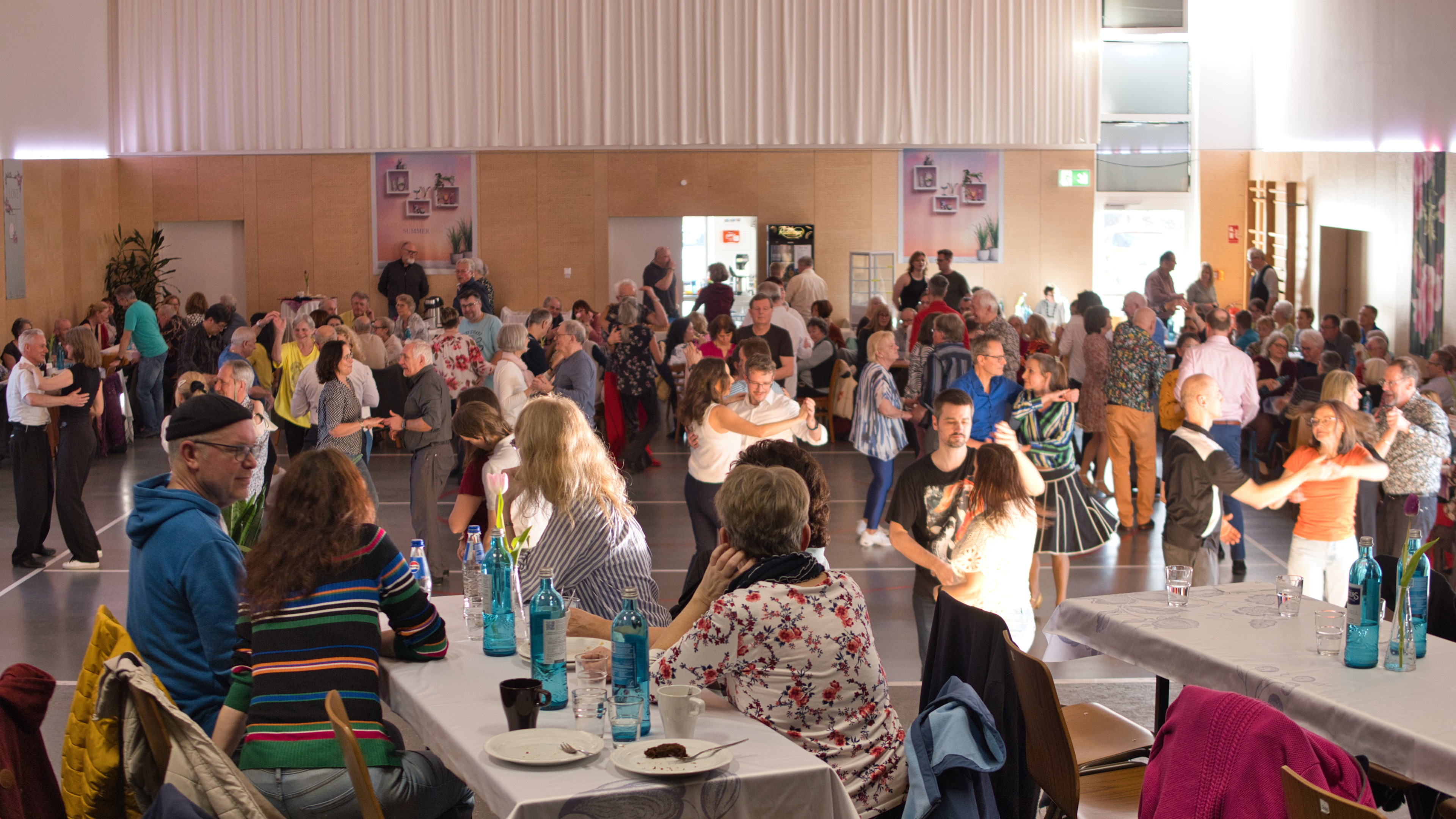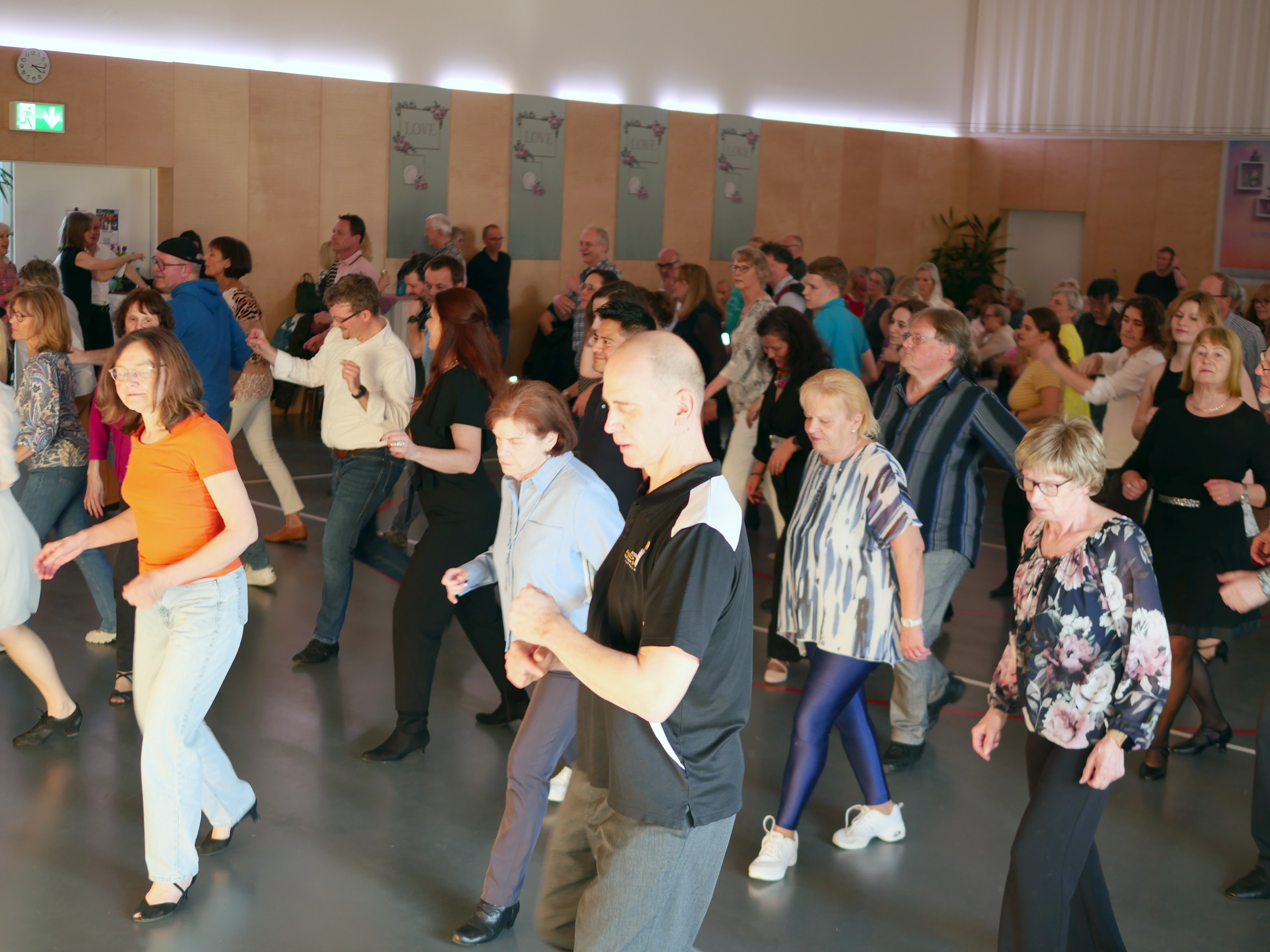 Geübte Tänzer, Anfänger, Paare oder auch Solotänzer füllen die Tanzfläche bei abwechslungsreicher Musik von Disco-Fox über Standard / Latein, Swing und dem beliebten Linedance.